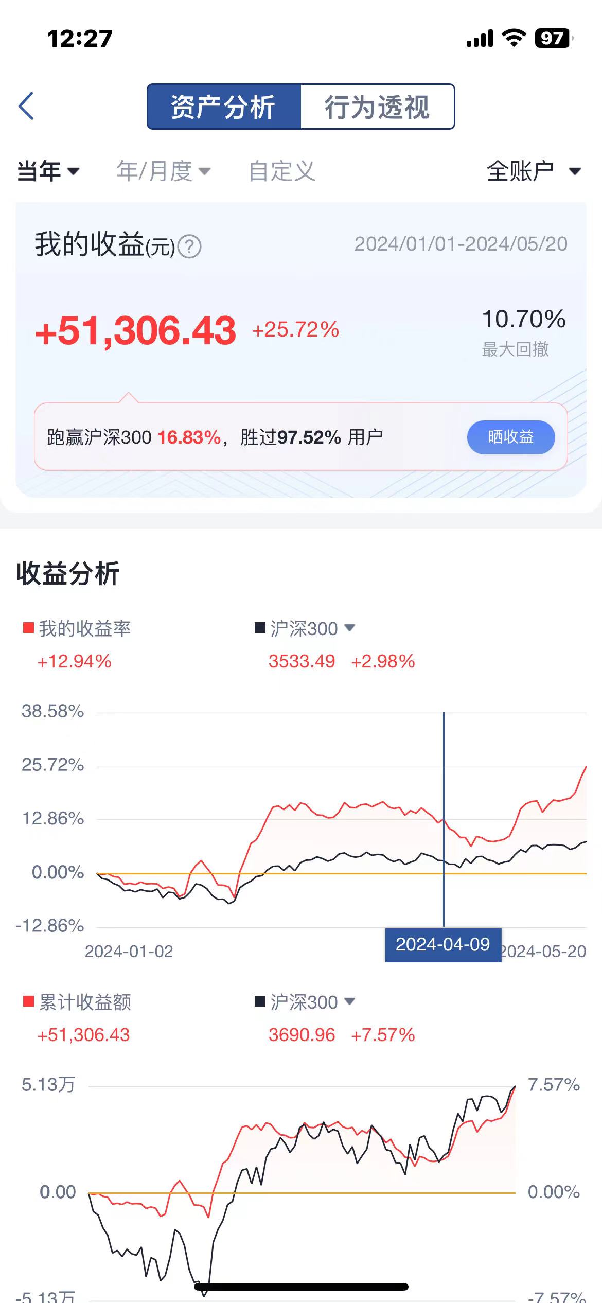 收益率 25.72% ,同期沪深300上涨 7.57% ,跑赢 16.83% ,超过 97.52% 的用户。